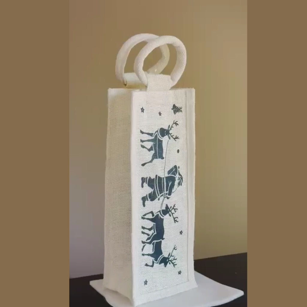 Santa & Reindeer Holiday Wine Bag – Eco-Friendly Jute Gift Carrier